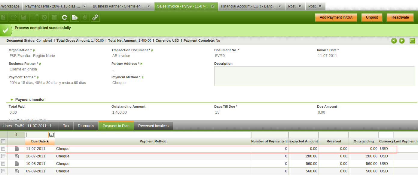 | Description | Payment Terms creates a payment plan with a 0,00 line | |||||||