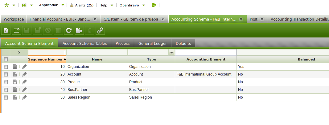 | Summary | 0018038: Accounting History and Accounting Tabs (Financial Account window) must show the Dimensions setup in the Acc. Schema | |||||||