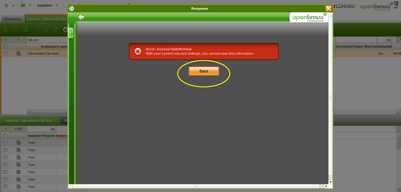 | Summary | 0018063: Wrong back button is shown when no access to table is shown | |||||||