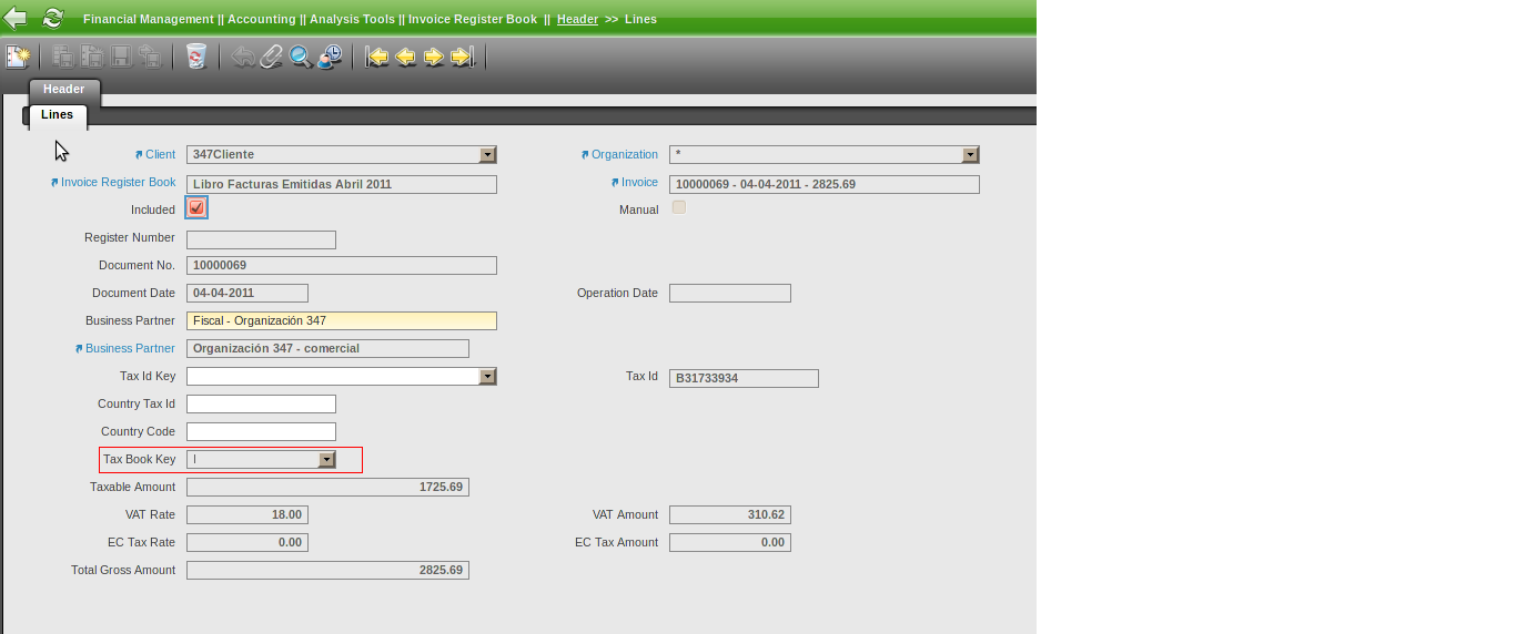 | Steps To Reproduce | Navigate to Financial Management // Accounting // Analysis Tools // Invoice Register Book // Header - Lines there is a field named "Tax Book Key" which should be named "Operation Key" | |||||||||||