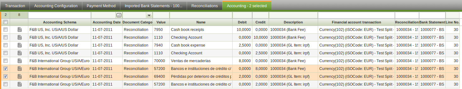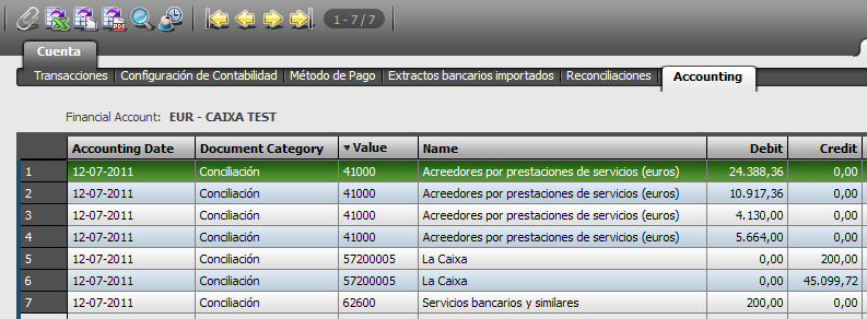 DescriptionThe tab accounting in the financial account does no summarize by bank accounting account when there is an split into the bank statement line. As you can check in the picture attached the bank accounting account (57200005) is showed in two lines instead of just one as the bank statement line imported through “cuaderno 43”.