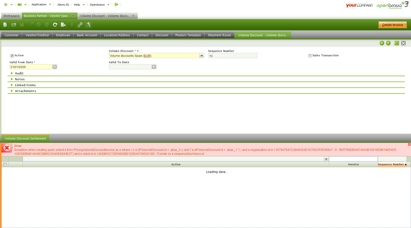 | Summary | 0018224: Volume discount settlement tab is not working. Red message appears due to a problem with the HQL | |||||||
