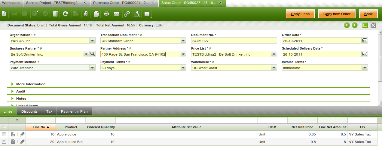 | Summary | 0018884: Service Project: After processing a winning bid, at creation of the Sales Order incorrect Payment Terms are populated | |||||||