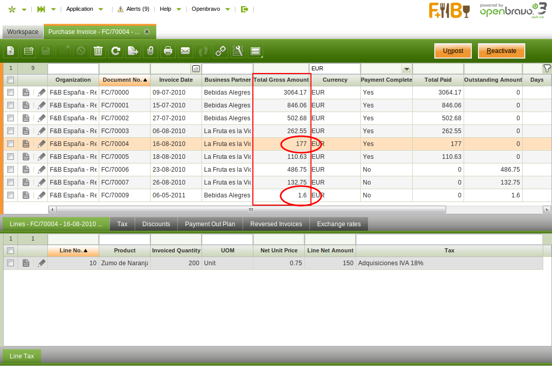 | Description | Monetary amounts should always be formatted according to the currency specifications. However, in grid view, when a monetary amount does not have cents, it is shown without decimals. For example: 177.00 EUR is shown as 177 EUR, while 177.52 EUR is shown correctly as 177.52 EUR. This makes it very difficult to read columns of values as they are not properly aligned. Please notice that in form view, the amounts are displayed correctly. The issue exists only in grid view. | |||||||