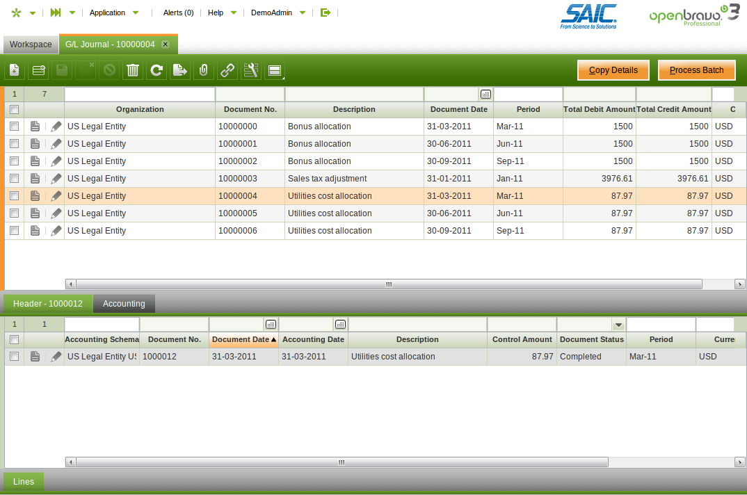 | Description | The G/L Journal window is historically one of the weak points of Openbravo, with the batch / header / lines structure being too complex for users. In Openbravo 3, the situation has improved greatly and the window - while still clunky - is now acceptable and can be successfully demonstrated, **IF** properly configured. However, the out of the box configuration is very poor resulting in a negative first impression on the product in an area that most people would want to see. For example: 1) Control amount on batch does not have any functionality and it should be hidden 2) Document type on batch is always GL Journal, there is no need to show it and it should not be one of the first fields. 3) Accounting schema on lines can be hidden (it is always the same as in the header) 4) Generated flag can be hidden. See in attachment a couple of screenshots for a decent initial configuration. | |||||||