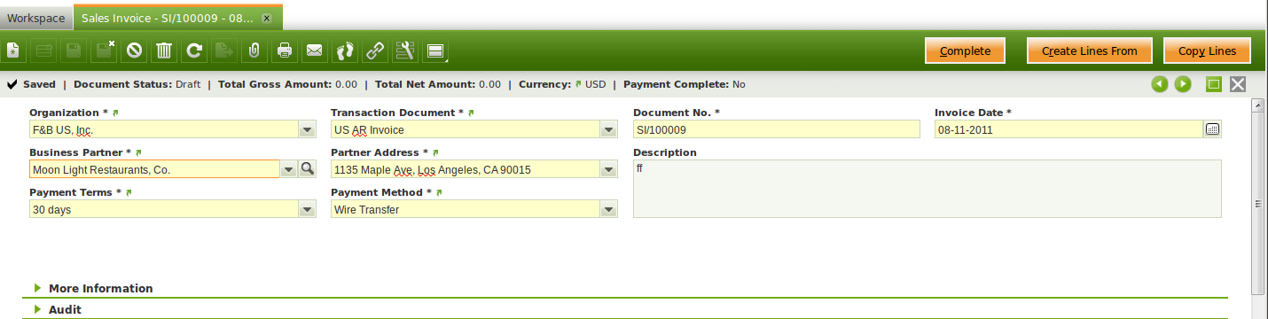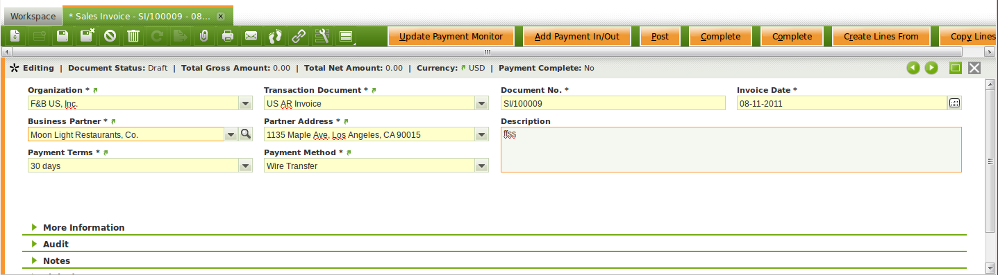 | Steps To Reproduce | Create a new Sales Invoice header and save it Open the new record in edit mode Change the value in the description field Notice that many extra toolbar buttons are displayed which should not be displayed Save the changes Notice the extra toolbar buttons disspear again | |||||||