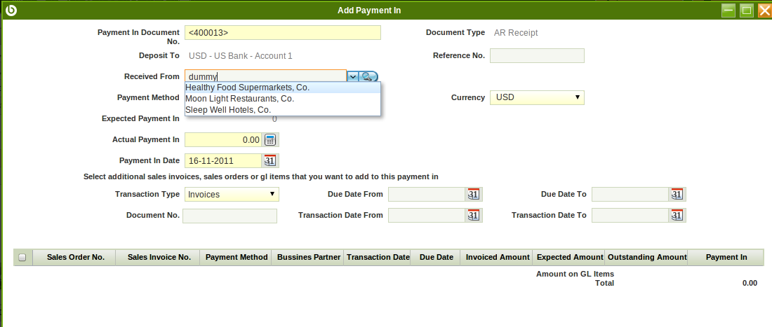 4) Type 'dummy' and realize that all the business parnters are shown.