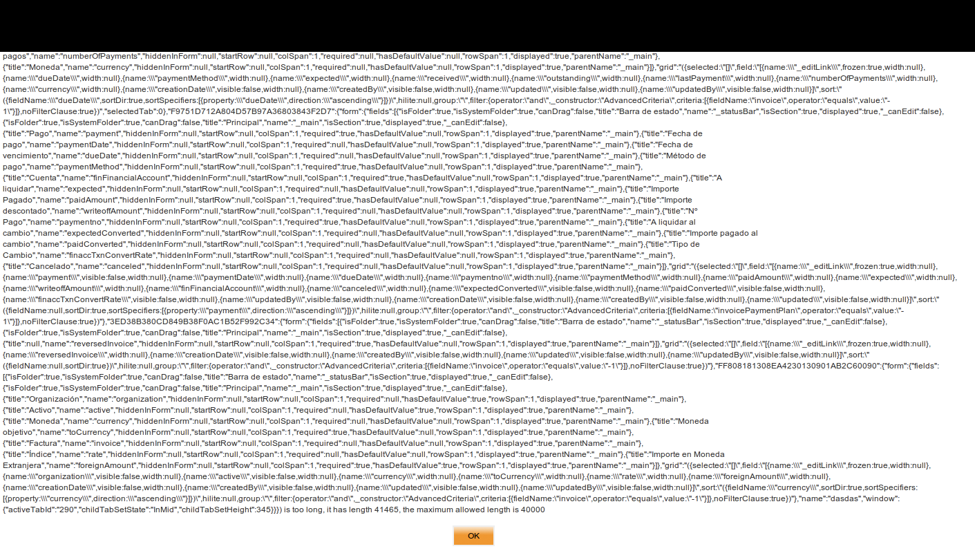 I was not able to reproduce the issue, trying to save view in Financial Account window in Spanish is no higher than 35K.