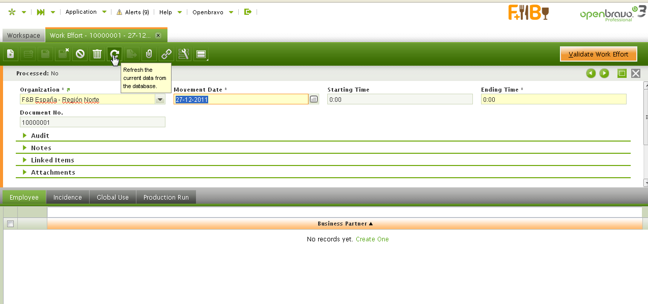 | Summary | 0019366: Refreshing Work Effort Header window changes values in the Starting Time & Ending Time columns/fields. | |||||||