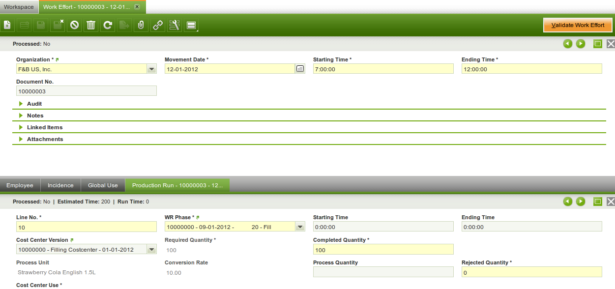 | Description | Refreshing Work Effort Header window changes values in the Starting Time & Ending Time columns/fields. | |||||||