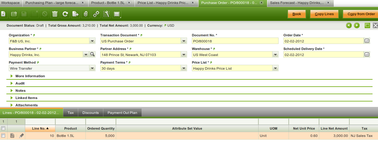 I checked with Aurora and she said the Purchase order may have 5 lines, but that was also not the case.