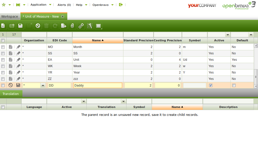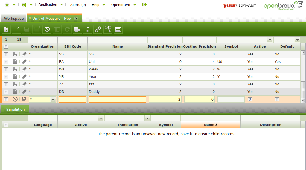 | Steps To Reproduce | 1. Open Unit of Measure window 2. Click Insert Row button 3. Complete the Edi Code field, press Tab and complete Name field. See screenshot_1 4. Press Enter. As expected, a new row is shown and the values of the previous record are saved. See screenshot_2 5. Click New in Form button 6. Complete Edi Code and Name fields and return to grid. 7. As expected, the new record is added to the grid. See screenshot_3 8. Click Insert Row button 9. Complete the Edi Code field, press Tab and complete Name field. See screenshot_4 10. Press Enter. Now, the values of the previous record are not shown. See screenshot_5 | ||||||||||