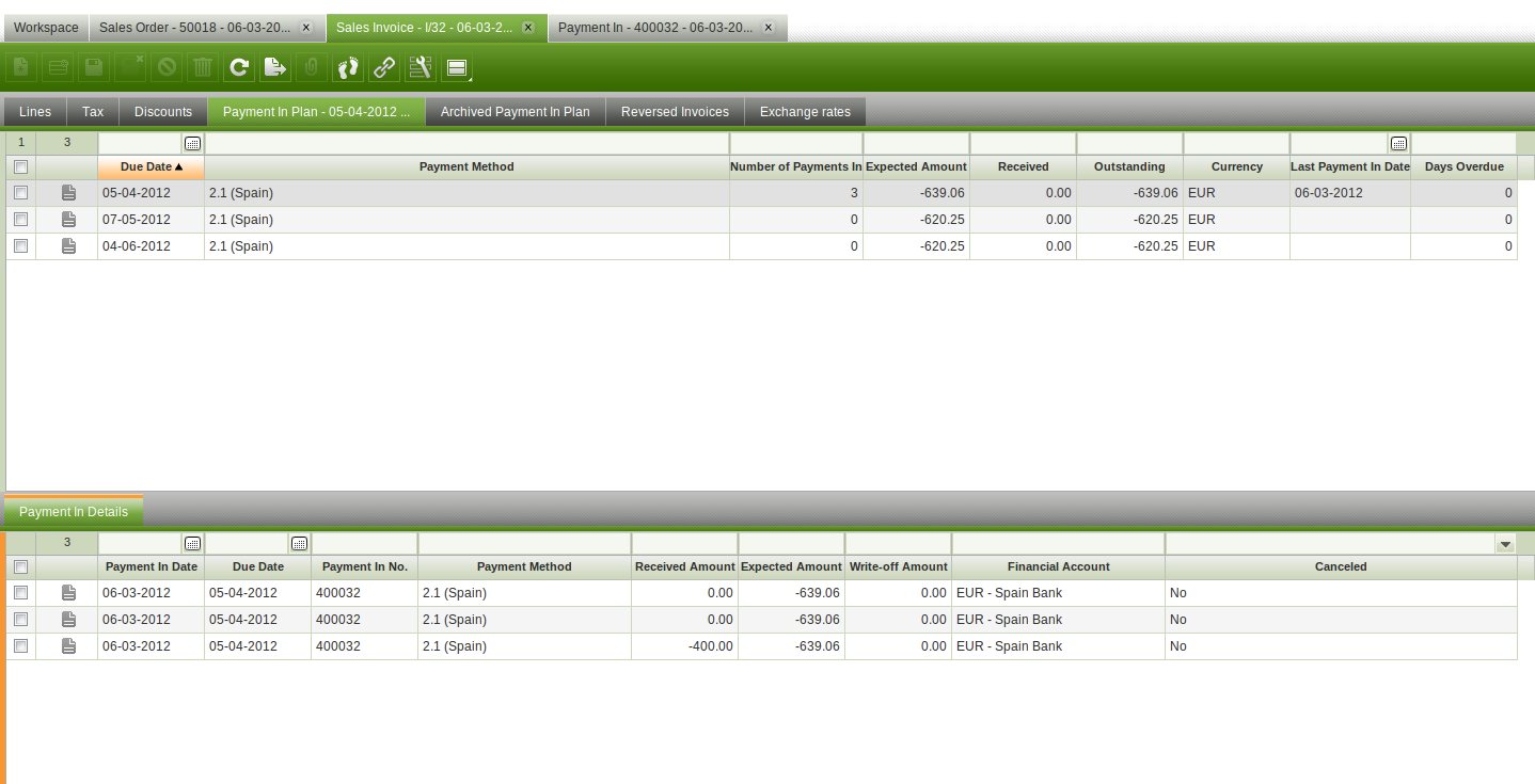 Notice that in it's Payment Details there are two lines wich are not supposed to be, with 0 amount each of them