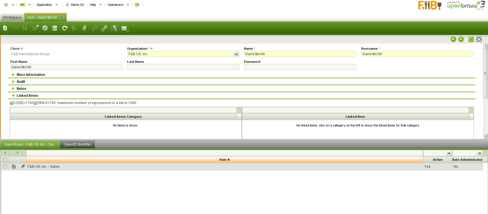 | Steps To Reproduce | - Access to user window - Select "David McHill" - Linked items section - An oracle error appears (see attached) | |||||||