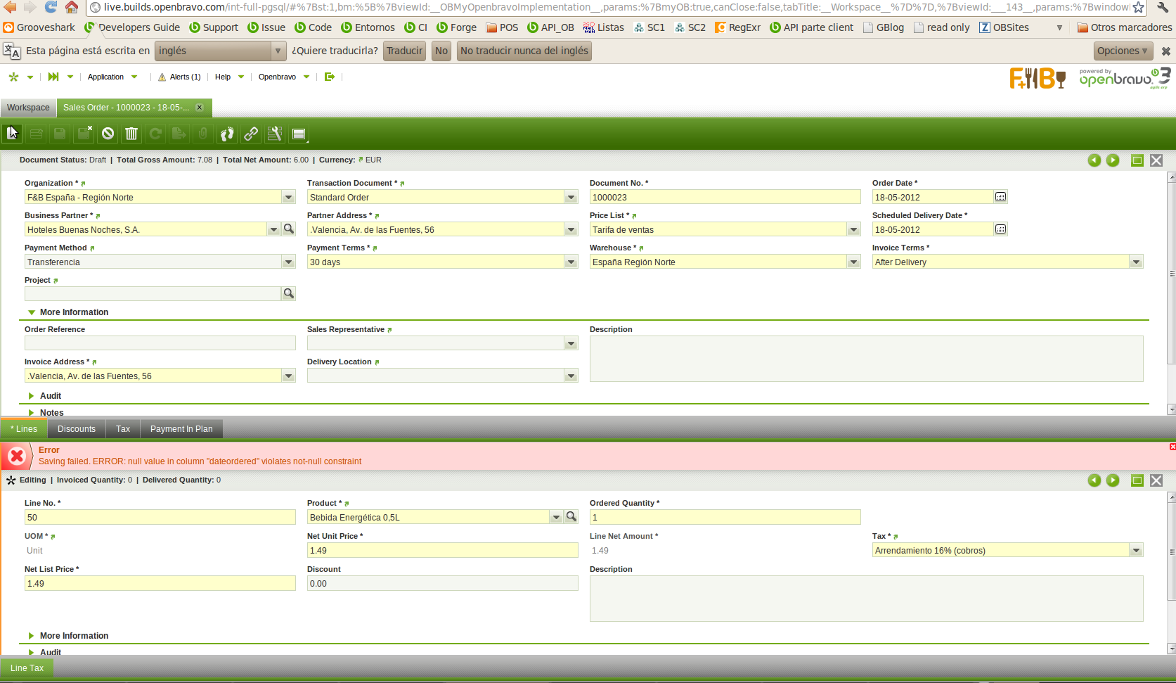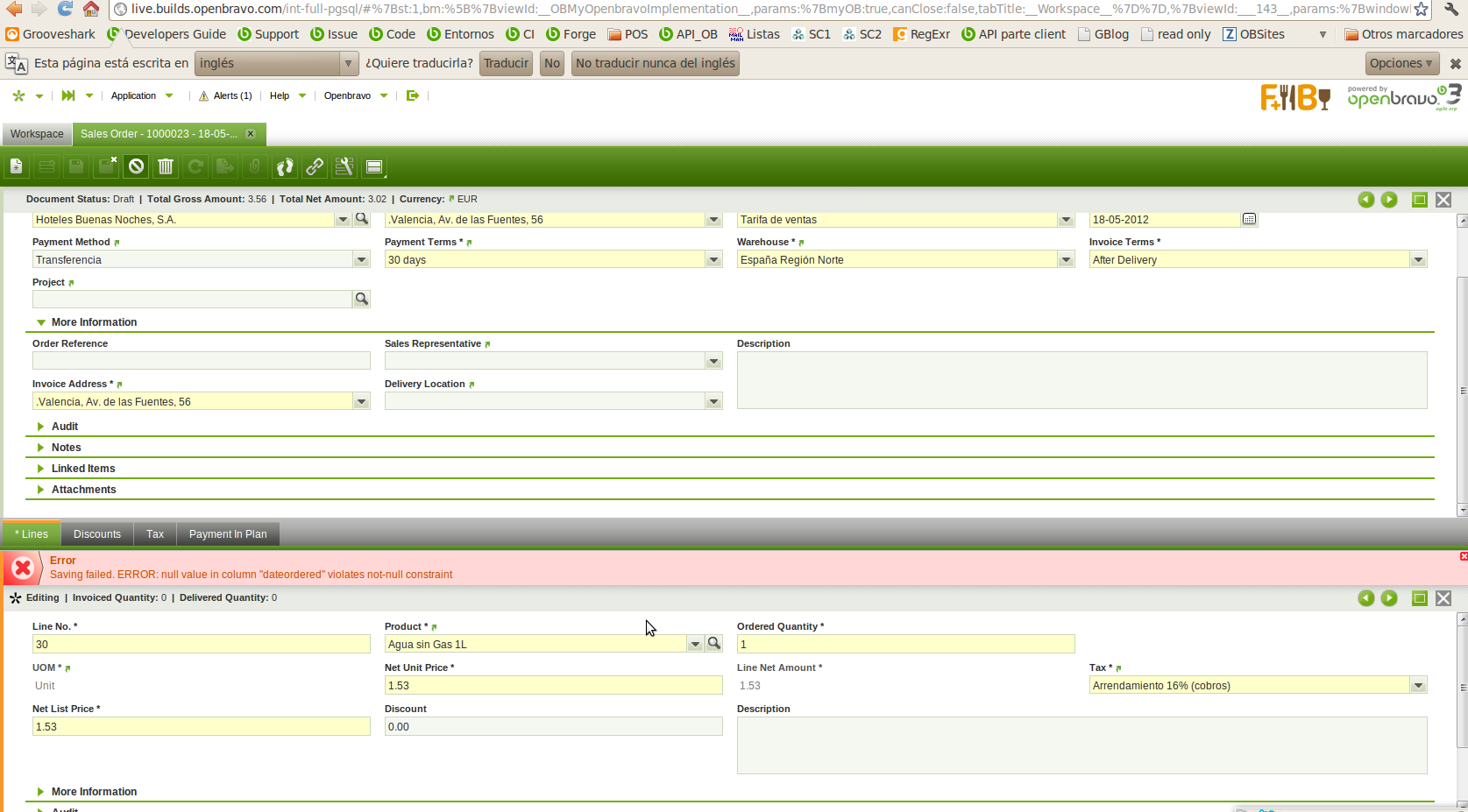 | Steps To Reproduce | As "System" display the field dateordered in "sales order" lines. As "Group Admin" go to "Sales Order" window and create a Header. Go to lines tab: -create a record in grid with tollbar button (insert a product) -without save, push in new record in form (insert a product) -without save, push in new record in form (insert a product) -... Sometimes, "Order Date" field value does not load correctly. The default value for this field is the header field "Order date". I have attached 2 images where I have reproduced the problem in live | |||||||