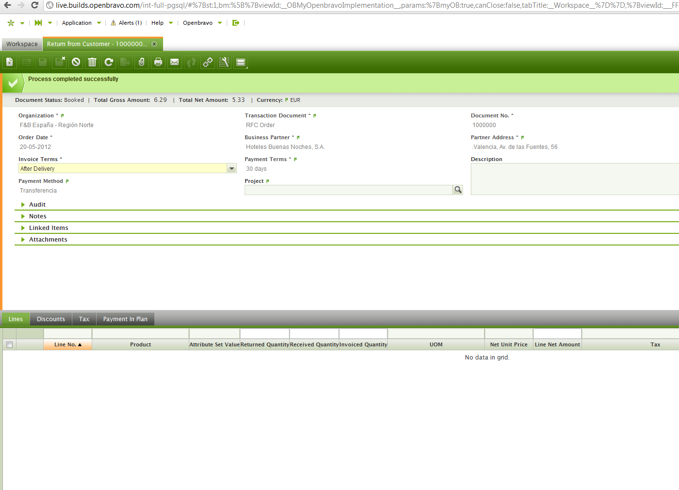 | Description | Random problem, mostly after long usage sessions. Issue is that after having picked return lines, the child grid in the main view does not get updated. The data is there, as the record can be processed successfully but the grid just does not show any lines. | |||||||
