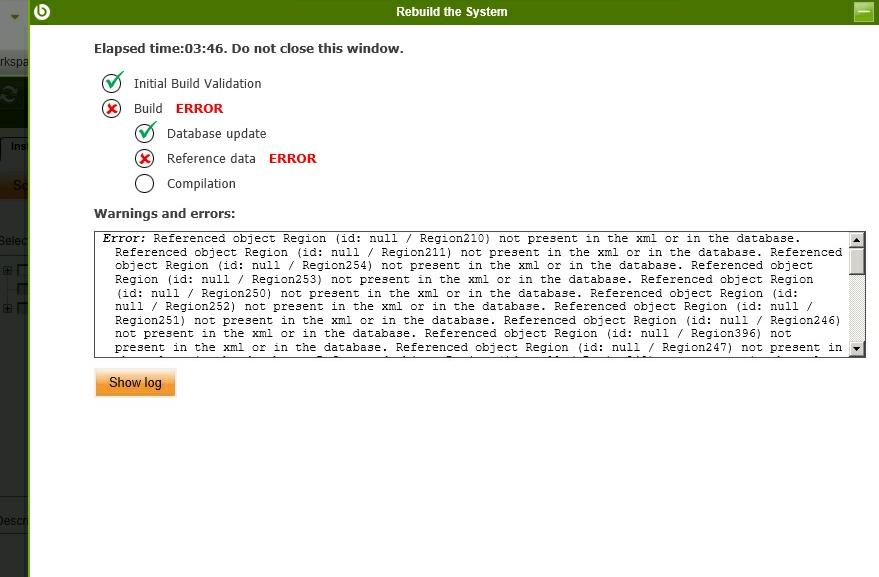 | Description | Reference data error appears when i rebuild the system after installing spanish localization pack | |||||||