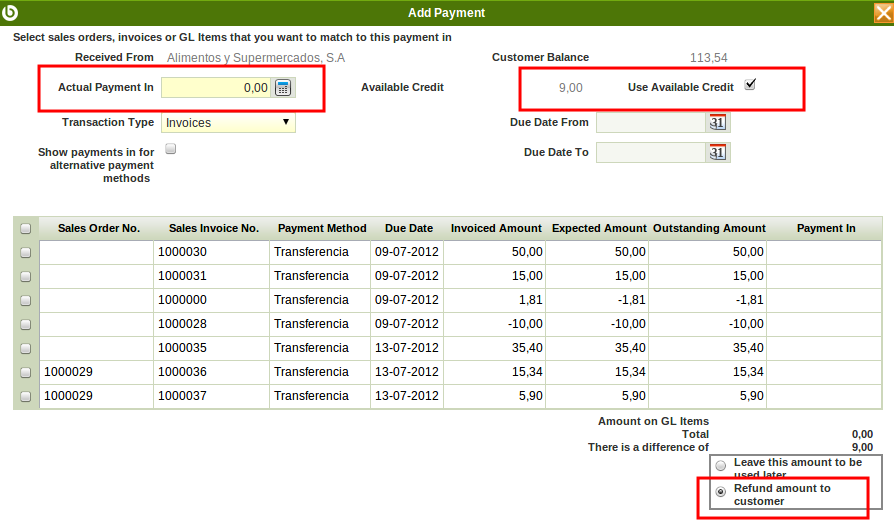0020762: Reactivate payment: scenario not working properly. Using available credit + refund to customer