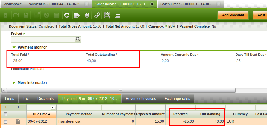 14) If you go to the invoice payment plan the amounts on payment plan and 15) payment monitor are wrong.