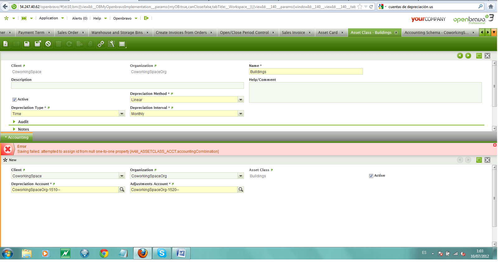 | Steps To Reproduce | Navigate to the asset class window and try to add a ledger account. You will get the error shown. | |||||||||||