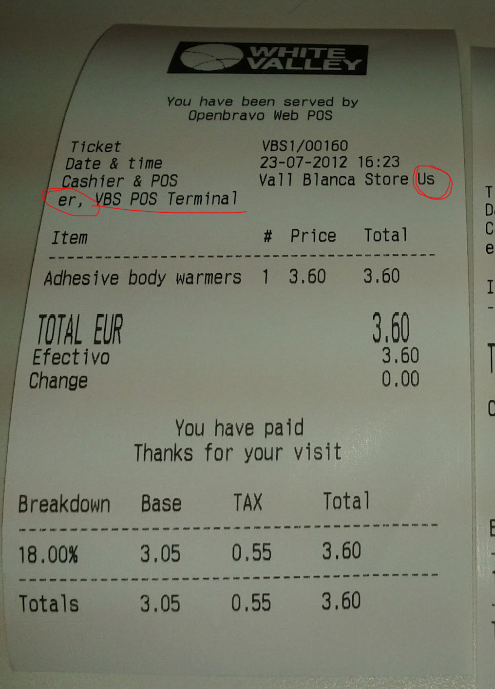| Summary | 0021184: Put Cashier and POS on separate row in ticket print template | |||||||||||