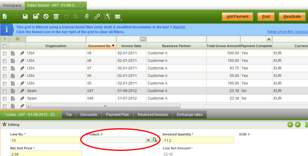 | Summary | 0021273: Invoice Line tab does not show the Product combo in Form mode | |||||||