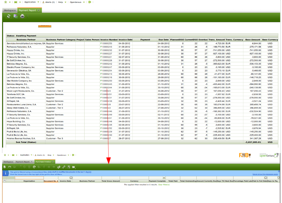 DescriptionIn payment report, when you click in the invoice link, we navigate to the purchase invoice window, but it doesn't appear any information because the window is filtered.