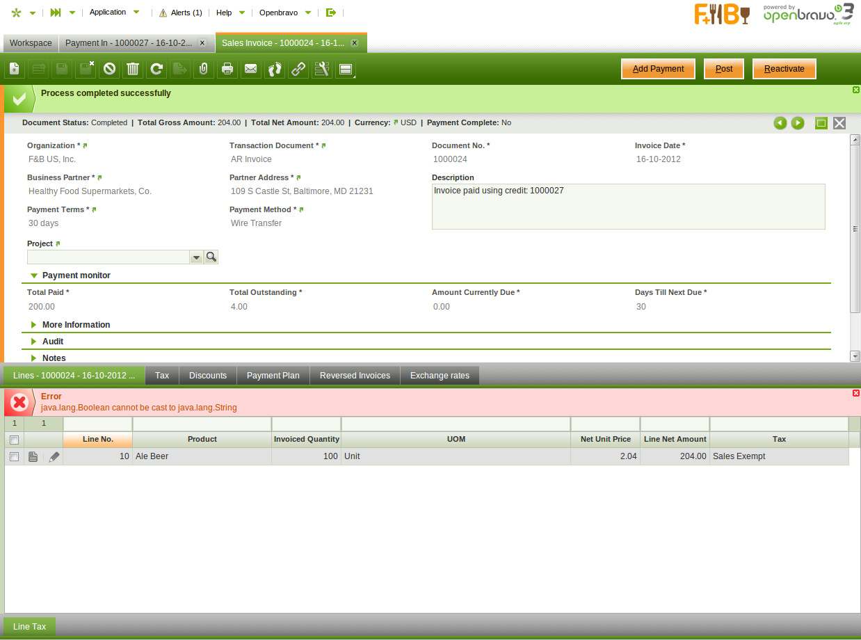 0021958: java.lang.Boolean cannot be cast to java.lang.String when applying a credit to an invoice
