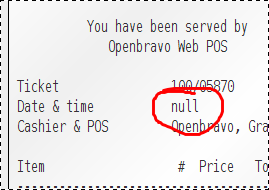 | Description | Whenever a ticket is printed, instead of displaying date correctly, "null" is shown. (see attached image) | |||||||