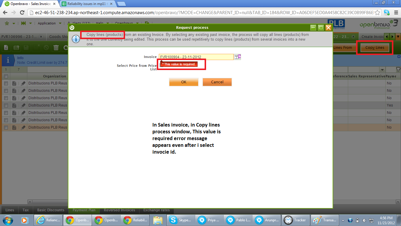 2012-11-23 12:44 sureshbabu File Added: In Sales invoice, in Copy lines process window, This value is required error message appears even after i select invocie id..png