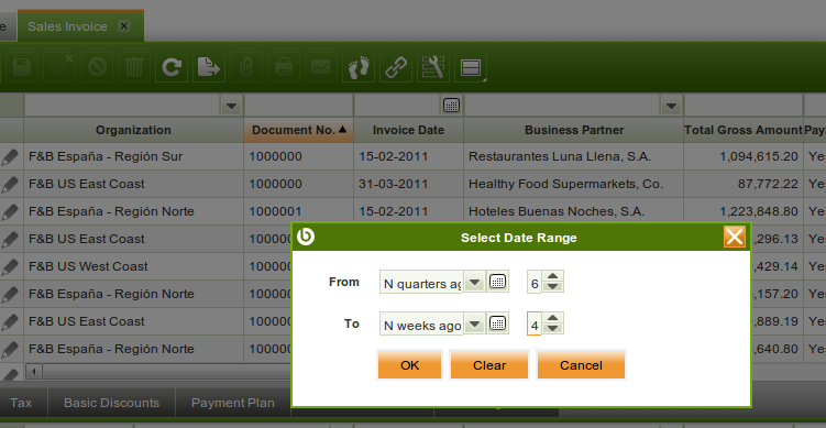 | Steps To Reproduce | Goto sales invoice For the date filter click the icon and select quarter or week and try to enter multiple digits in the numeric field. | |||||||