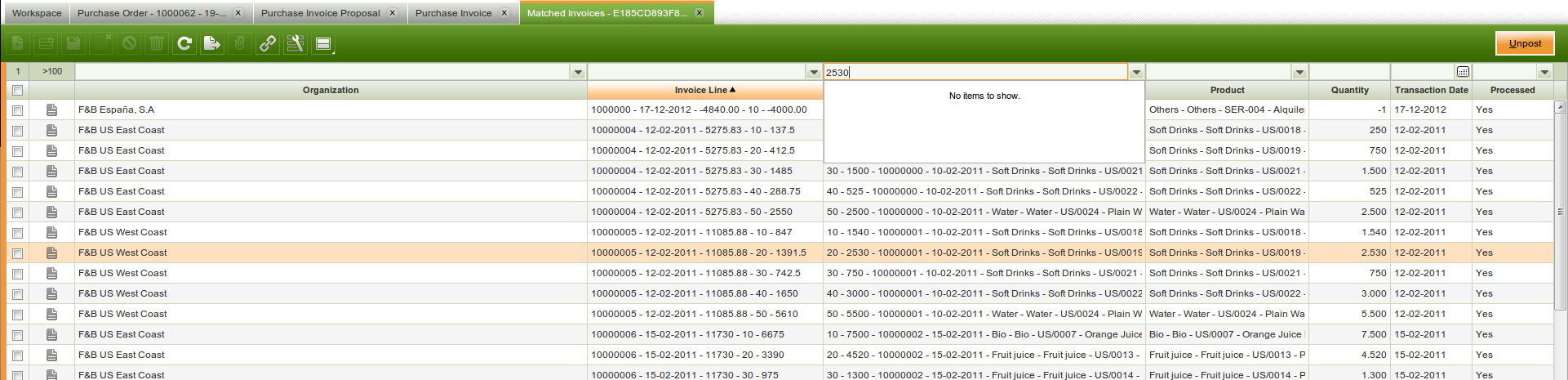 | Steps To Reproduce | 1) Go to Matched Invoices window 2) Try to filter by Invoice Line or Goods Receipt Line columns | |||||||
