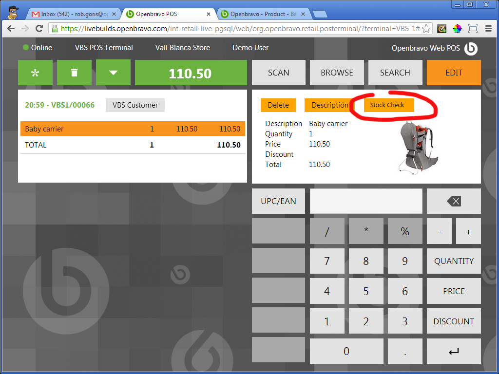 | Proposed Solution | Stock-button_1.png ================= - You select the product and the info screen gets opened - Click "Add to ticket button" Stock-button_2.png ================= - A line for this product is created - If you want to increase the quantity, tap the product as it happens in the regular flow - Or if you want to increase the qty in 500 units, click the line and the numeric pad will be opened as it happens in the regular flow Stock-button_3.png ================= - We will add a new button "Stock check" If you want to see the info screen again | |||||||