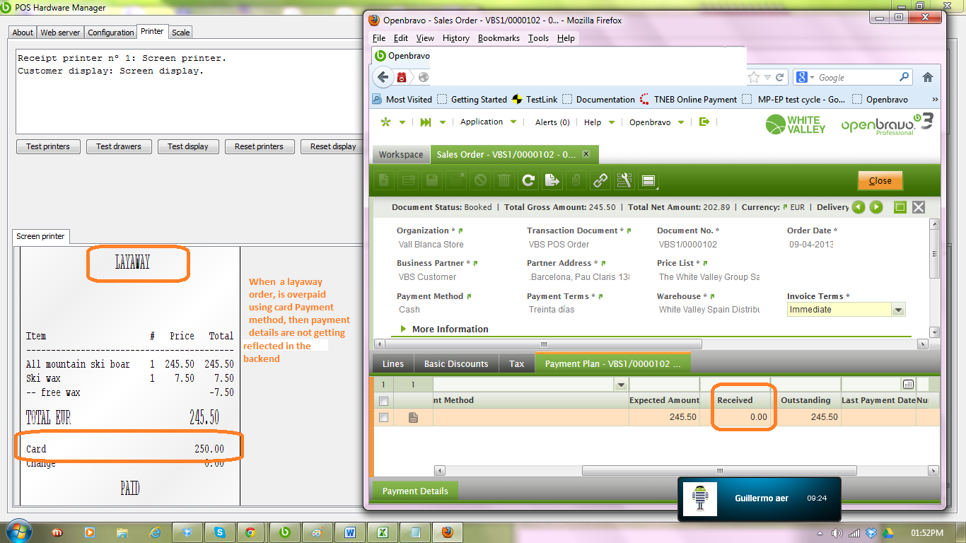 | Steps To Reproduce | A) Create a layaway order for amount 245.50 b) Then reopen the Layaway order, and make a payment using card payment method for 250 euros. c) Close the Layaway order d) Navigate back end system and check the payment details in the payment plan tab for the above created sales order. (Received column shows 0.00 amount) | |||||||