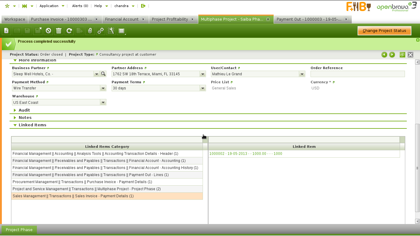 | Steps To Reproduce | 1) User Login Openbravo/openbravo 2) Create a Multiphase Project, after project design completion change status to Order. 3) Open new record in Payment Out window. 4) Click on Add Details Button. 5) Choose transaction type is G/L Items in pop-up. 6) Select G/L Item 7) Enter Payment Out amount 8) Under accounting dimensions select Project, then press Add button. 9) Press Process button. 10) Check Linked Items Category in Multiphase Project window. | |||||||||||