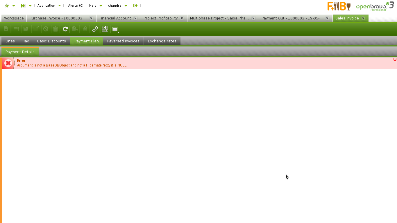 | Description | In Payment Out, i added a G/L Item for a project. But in Linked Items, along with Accounting information, both Purchase and Sales Invoice Payment Details links exist. Please find screen shot for more information. If i try to click on Sales Invoice-Payment Details Link Item, it is throwing Error Argument is not a BaseOBObject and not a HibernateProxy it is NULL | |||||||||||