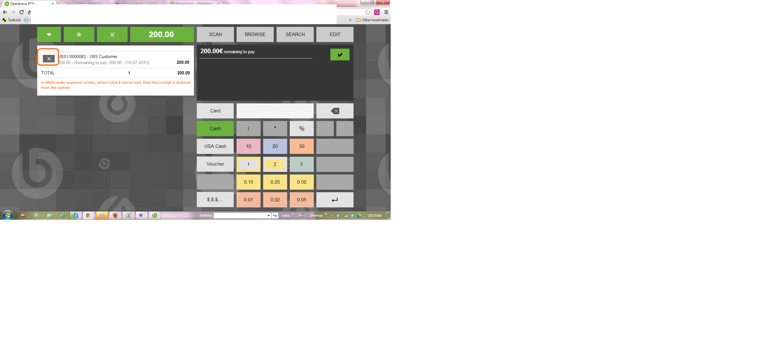 | Description | In Multi order payment screen, when i click X cancel icon, then the receipt is deleted from the system | |||||||