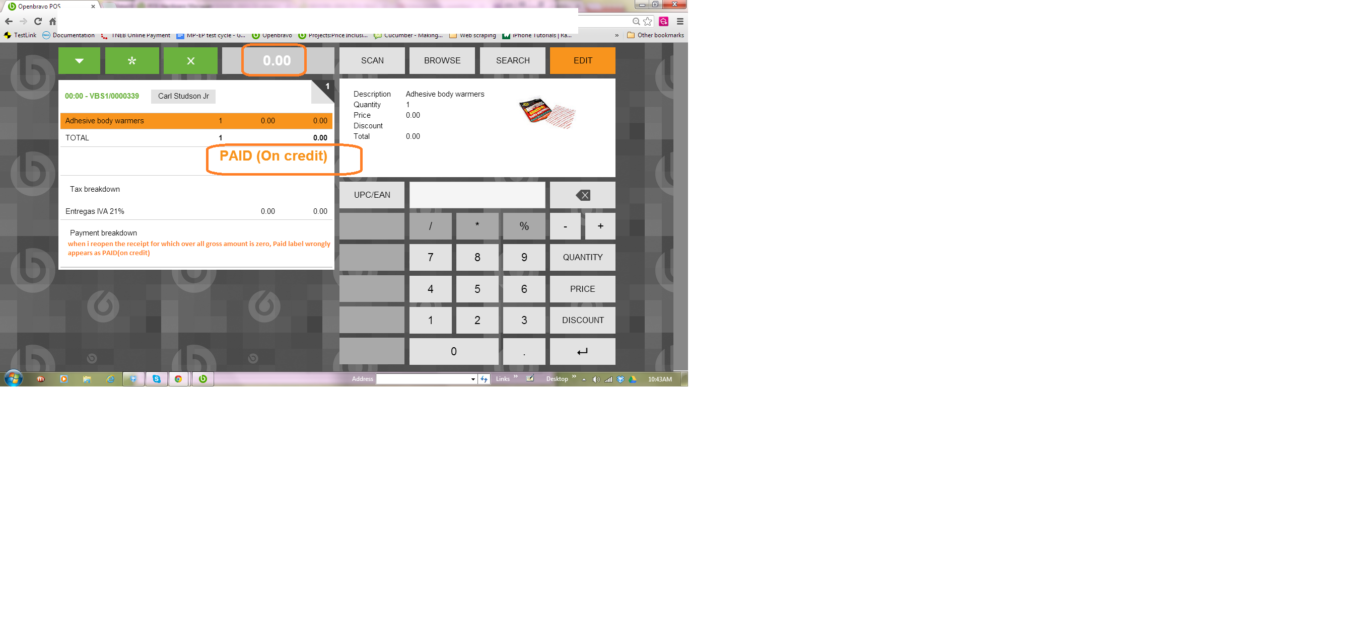 | 2013-07-31 08:14 | sureshbabu | File Added: when i reopen the receipt for which over all gross amount is zero, Paid label wrongly appears as PAID(on credit).png | |