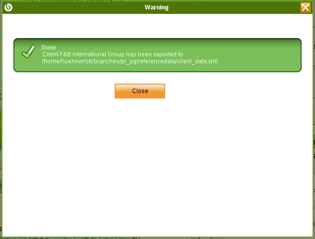 | Description | running export client after finishing it it shows the result in a popup (smartclient type popup). That has title warning even if inside popup no problems are shown. | |||||||