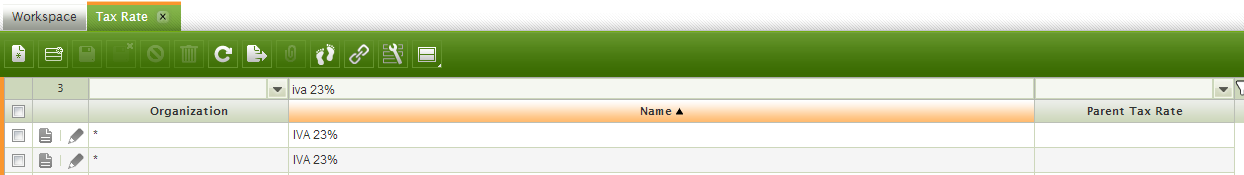 | Steps To Reproduce | Go to Financial Management > Accounting > Setup > Tax Rate Create a new tax (IVA 23%) with no parent Create a second tax with the same information We are able to save the second one but we shouldn't | |||||||||||