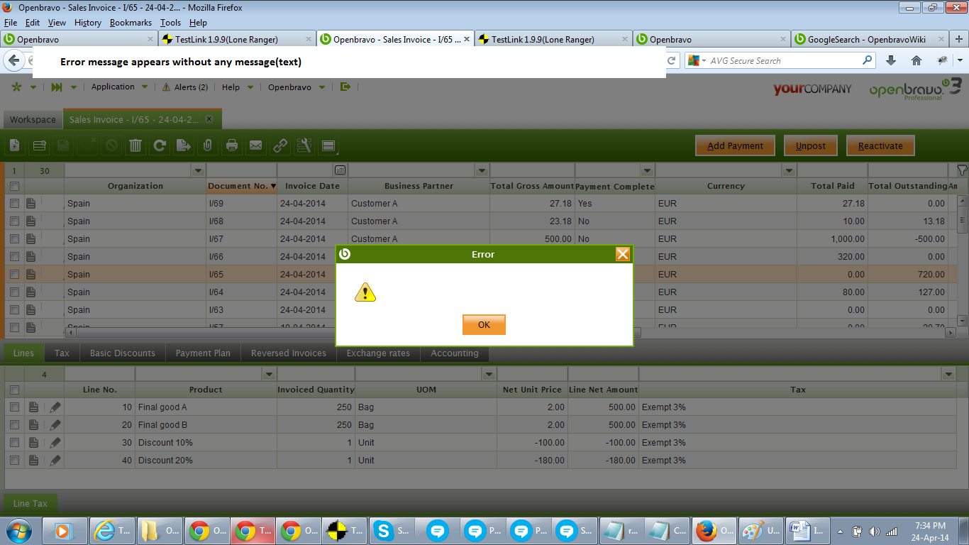 | defect | [Openbravo ERP] 09. Financial management | trivial | always | 2014-04-24 16:12 | 2016-02-03 05:05 | |||||||