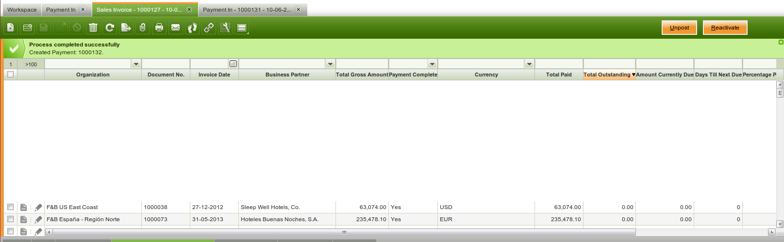 | Steps To Reproduce | Go to Sales invoice window Remove default filters in grid Order by Outstanding Amount Desc Pick (just select do not edit) the last invoice with an outstanding amount and press on add payment button click ok to create the payment Auto-refresh now places invoice in a different row because now outstanding amount is zero Try to scroll up and realize grid gets blank without rows on top | |||||||