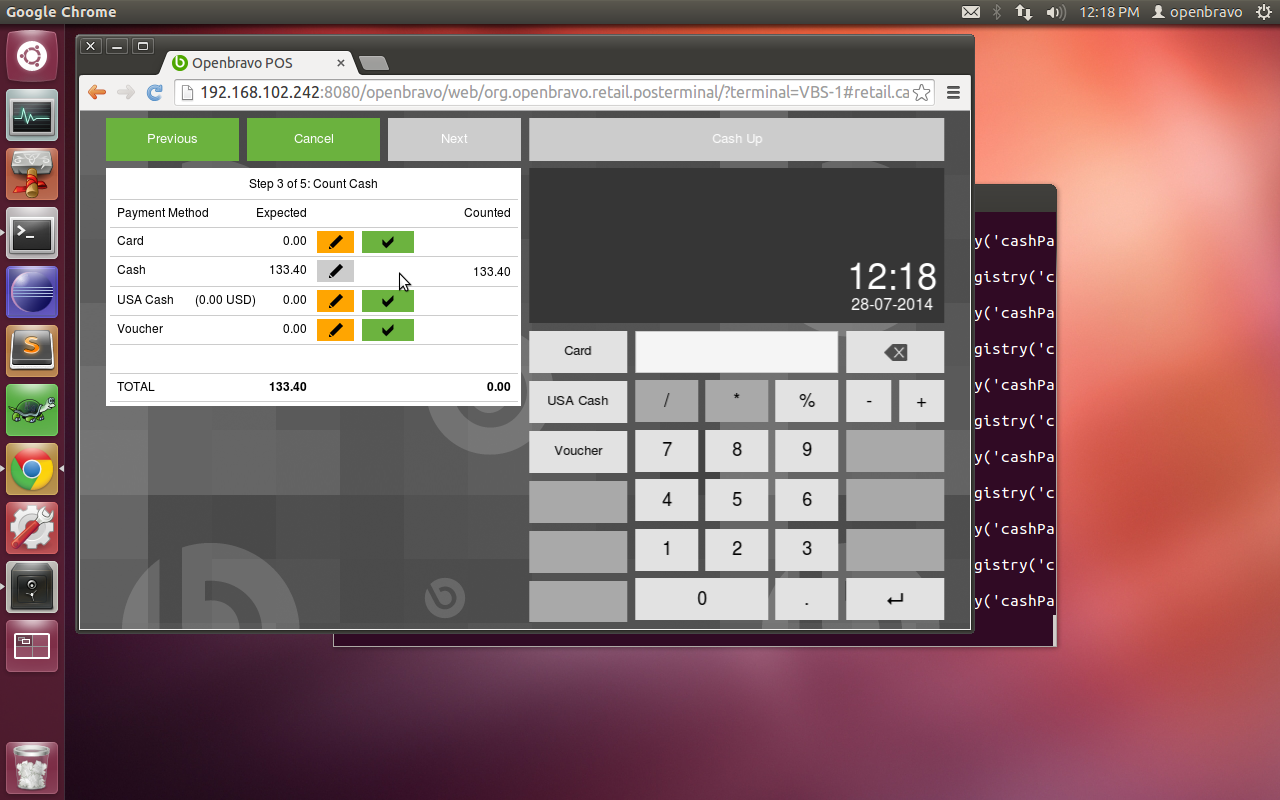 | 2014-08-02 02:47 | Orekaria | Summary | Cashup step 3 of 5 is showing 5 buttons when it should show 3 => Stabilization: The buttons in the cashup can be tapped faster than the time its async processes need to finish |