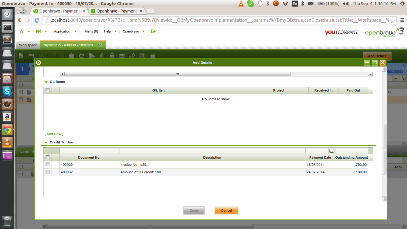 - Go to payment in and select the payment with document no 400030