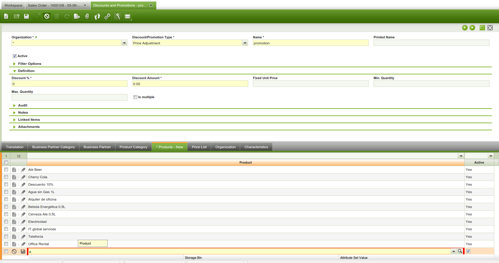 | Steps To Reproduce | -Go to discounts and promotions window -Add a new line -Go to the product subtab -Add lines on grid view until you go to the bottom of the page -On the last row try to fill the product by writing on the field. *The values are not shown because the suggestions are shwon under the row. See attached image. On the sales order window, on the lines does error does not happen on the product selector. On that case the suggestion are shown over the field. | |||||||