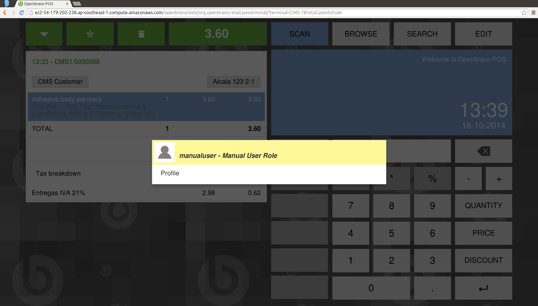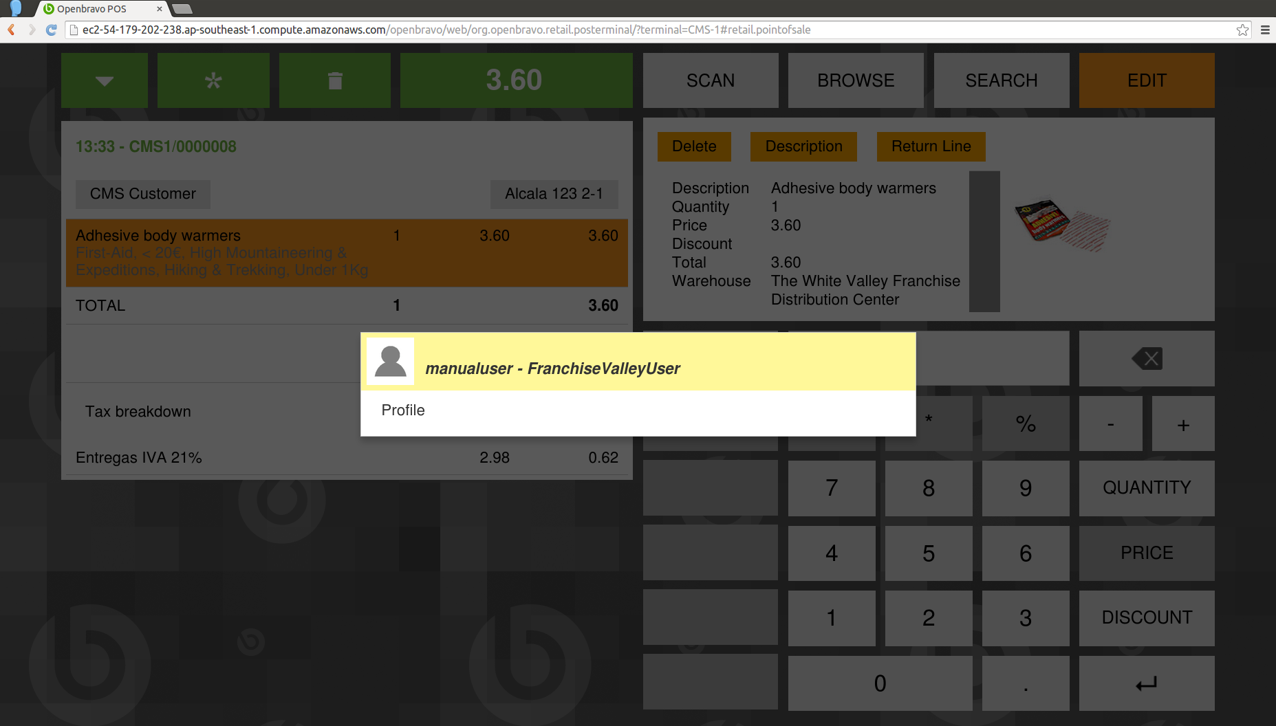 | Steps To Reproduce | In POS backend: [RR14Q4] Login into ERP System: "Username": Openbravo "Password": openbravo Change the role as “The White Valley Group Admin” Navigate to User window (General Setup || Security || User) Create a new record (Ctrl + D) To create a new user, enter the below user details Client: The White Valley Group Organization: * Name: manualuser Username: manualuser Password: openbravo Click Ctrl + s to save the details Then navigate to POS Terminal Access tab Click Ctrl + D to add a new record Then enter POS Terminal: CMS POS Terminal (This will depend on your terminal) Click Ctrl + S to save the details Navigate to Role window (General Setup || Security || Role) Create a new record by clicking the hot keys Ctrl + D To create a new user role, enter the below user details Client: The White Valley Group Organization: * Name: Manual User Role User level: Organization Manual: Checked Restricted Backend access: Checked Click Ctrl + s to save the details Then navigate to Org Access tab Click Create one link to add new record Organization: Central Mountains Store (This again depends on your terminal) (I will assume that you are using CMS-1 POS terminal) Organization Administrator: No Then navigate to User Assignment tab Click Create one link to add new record Then select below details User/Contact: manualuser Role Administrator: Unchecked Then navigate to Form Access Click Create one link to add new record Then select below details Special Form: Web POS Click Ctrl + s to save the details Go again to User window, select manualuser record and go to "User Roles" tab. Create new record and add "the white valley group admin" role and set it as active. Create new record and add "FranchiseValleyUser" role and set it as active. (Now you should have 3 roles: "manual user role", "the white valley group admin" and "FranchiseValleyUser"). Now go to POS and log in as manualuser/openbravo (You must realise that you have the "PRICE" feature disabled). Go to the menu and go to User | Profile, and select "FranchiseValleyUser" role and Apply. Realise that PRICE feature is disabled. Go to Menu | User | Profile again and select "FranchiseValleyUser" role and Apply. You will now have "PRICE" feature enabled. | |||||||