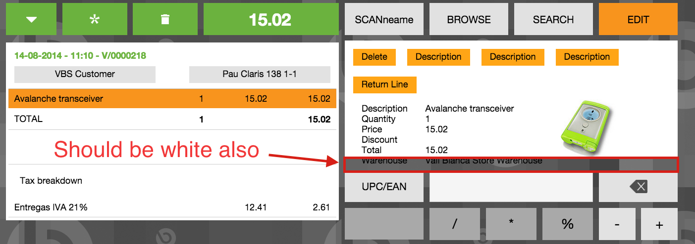 Repository: erp/pmods/org.openbravo.retail.posterminal Changeset: bf76ea058c77a9c739a6d7c88af0759b29c25fbf Author: Mario Castello <mario.castello <at> peoplewalking.com> Date: Thu Dec 11 10:39:19 2014 -0600 URL: http://code.openbravo.com/erp/pmods/org.openbravo.retail.posterminal/rev/bf76ea058c77a9c739a6d7c88af0759b29c25fbf [^] Fixed issue 27909: Edit line panel is not showing properly --- M web/org.openbravo.retail.posterminal/js/pointofsale/view/editline.js --- |
