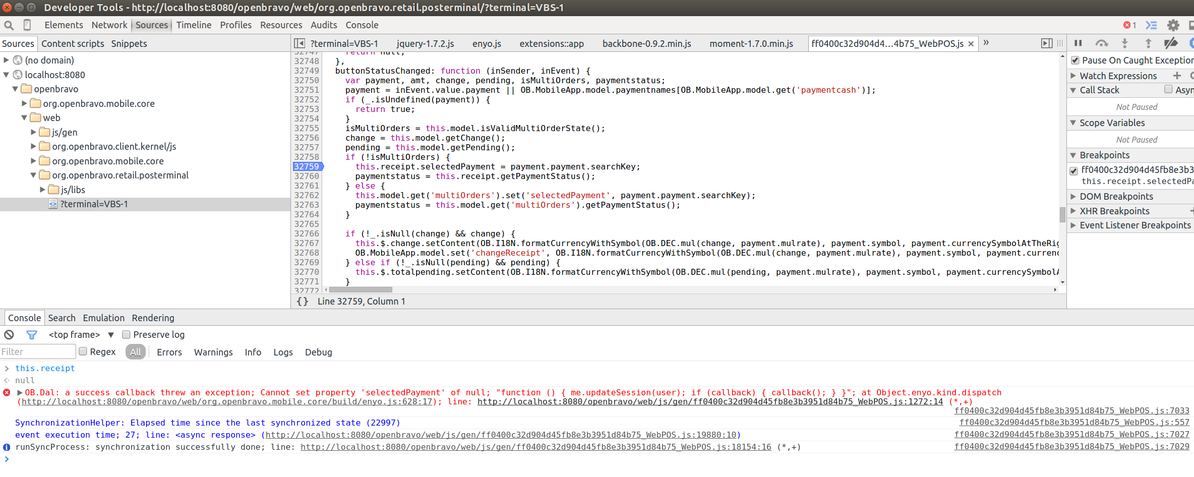 | Steps To Reproduce | - create 2 open tickets - goto pay open tickets view (see screenshot) - refresh the page with F5: js error Cannot set property 'selectedPayment' of null | |||||||
