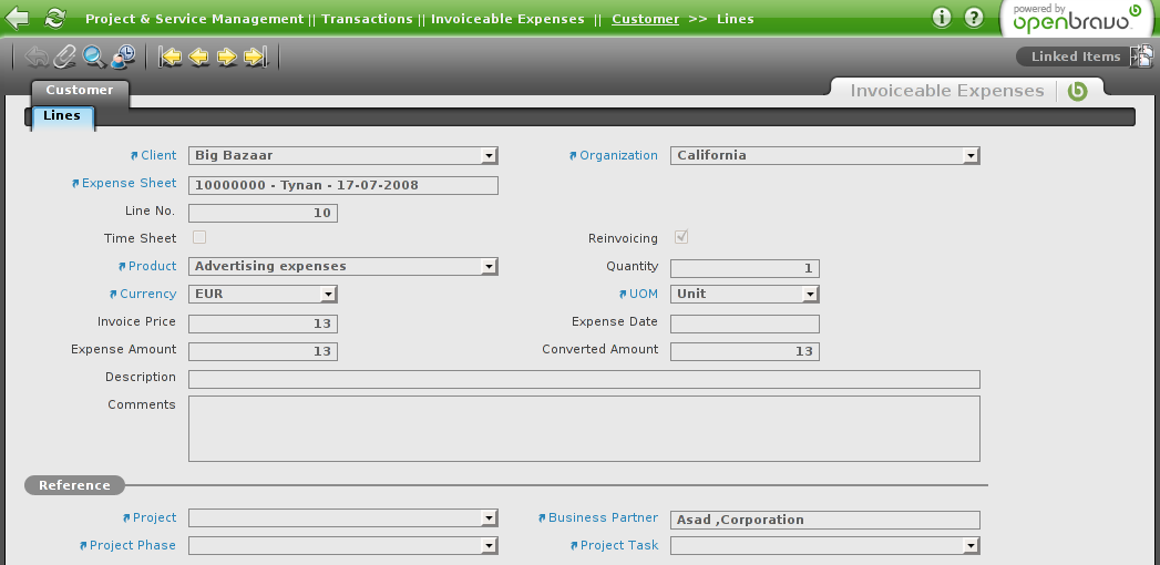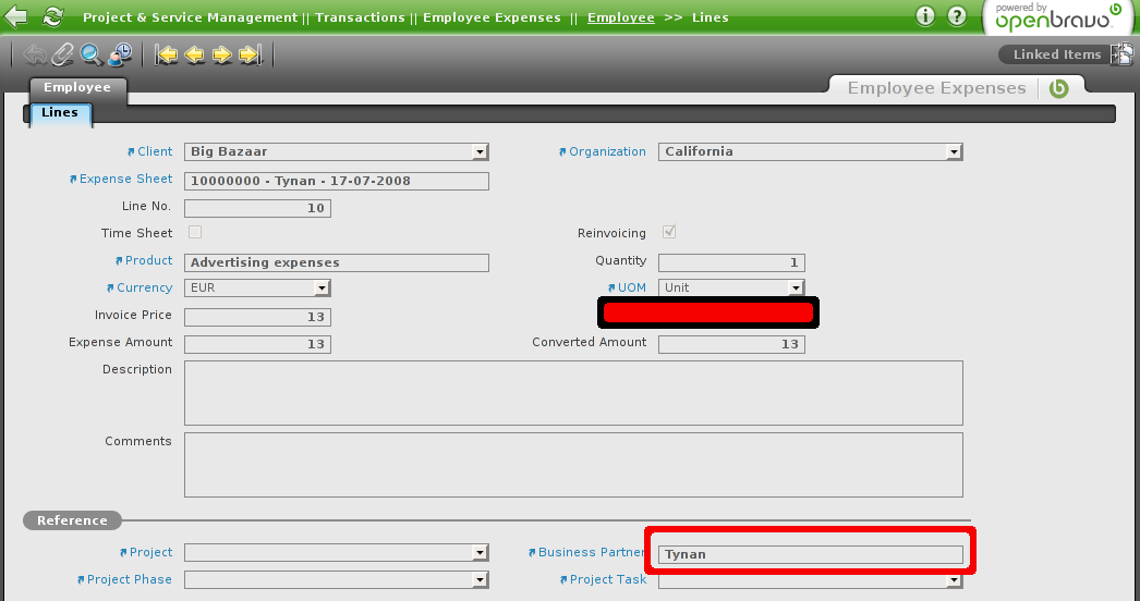 | Steps To Reproduce | 1. Go to Project & Service Management || Transactions || Expense Sheet 2. Add a new one and save 3. Go to 'Lines' tab. 4. Select Reinvoincing option, a product and a business partner. 5. Go back to 'Header' tab and click on 'Process' button. 5. Go to Project & Service Management || Transactions || Employee Expenses 6. Select the previous employee and go to 'Lines' tab. Notice that: 1) 'Expense Date' field is not shown. 2) 'Business Partner' field is filled with employee name instead of business partner one. | |||||||
