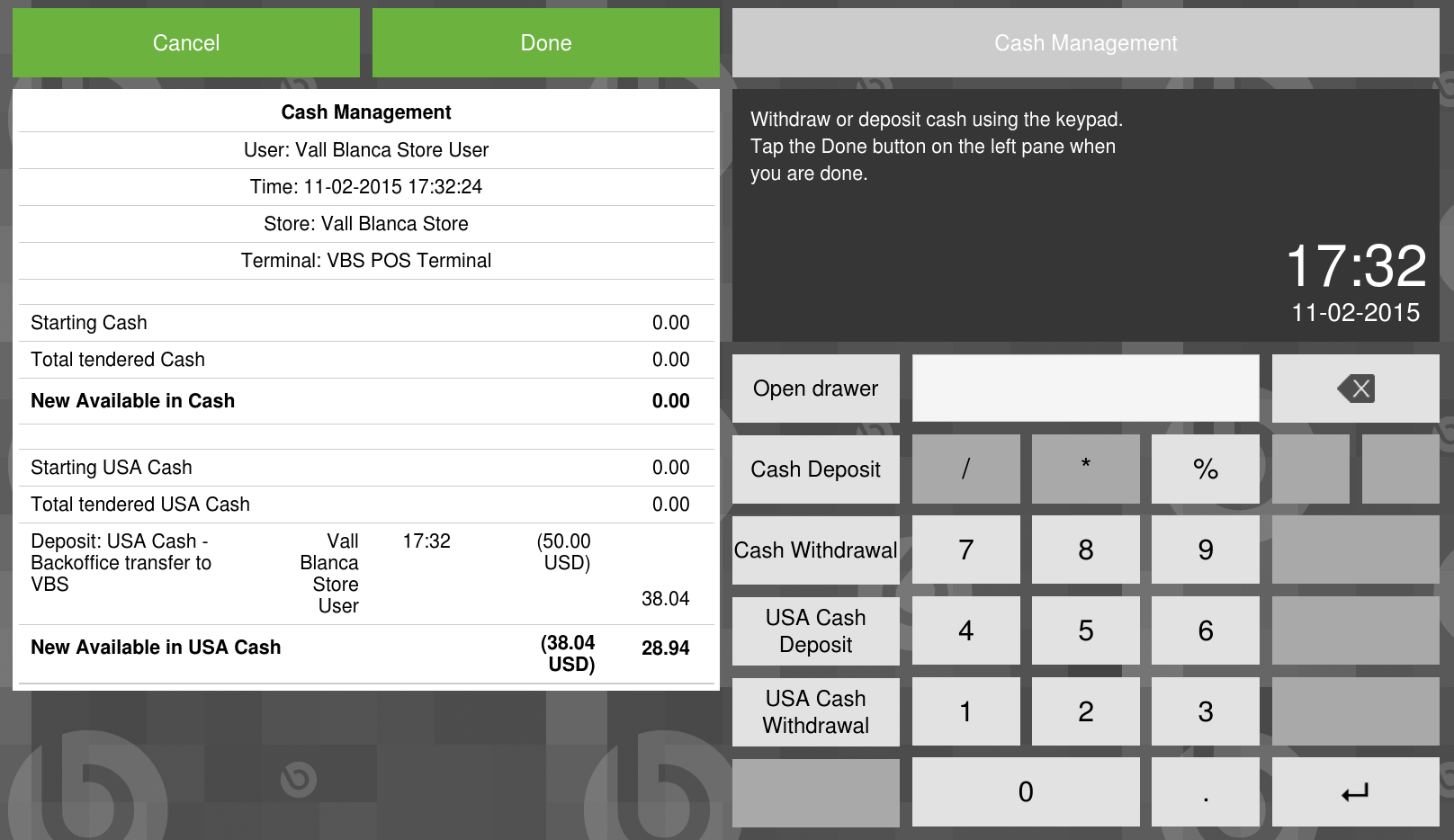 DescriptionDoing a cash management with a different currency than the original generates wrong data